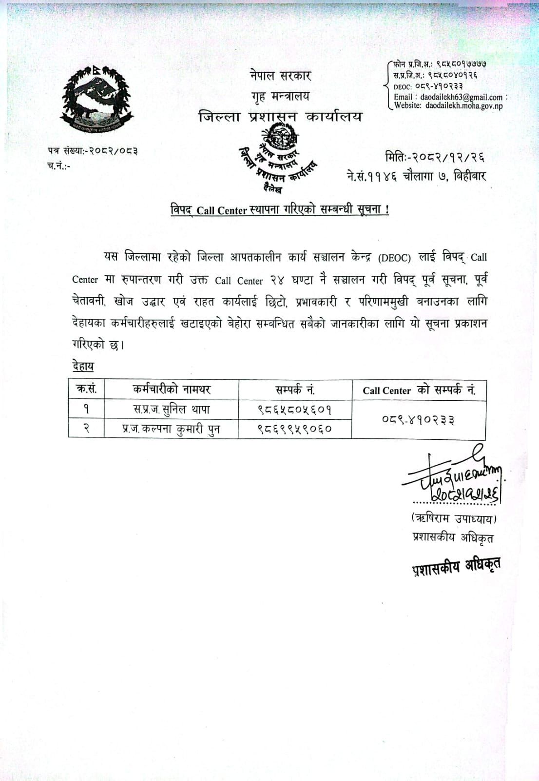 © सर्वाधिकार सुरक्षित जिल्ला प्रशासन कार्यालय, दैलेख .